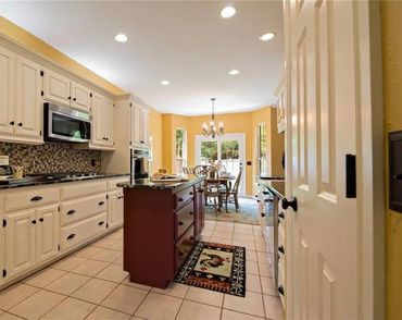 Yes, and the kitchen is large and boasts a gas range, island, and any dishes needed for cooking for your family.